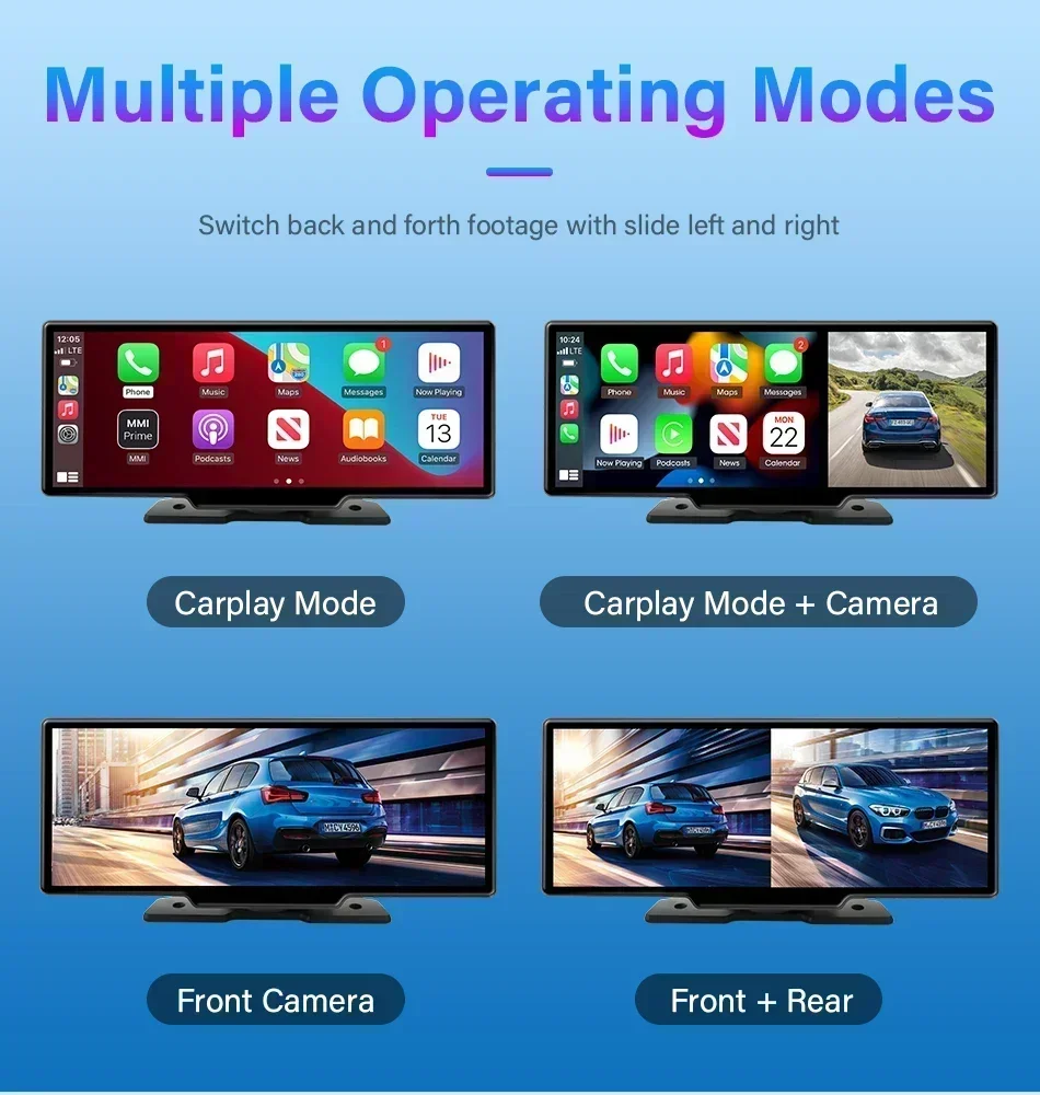 Transformez votre expérience embarquée avec l’écran intelligent Srnubi 10.26” sans fil : compatible Carplay iOS et Android Auto, entrée WiFi/Bluetooth 5.0, DVR 4K (2880x2160), et navigation GPS précise. Double caméra (avant 4K + arrière 1080p en option), vision nocturne Sony IMX307, enregistreur de trajet, lecture en boucle, écran tactile IPS 16:9. Synchronisation audio optimisée (Bluetooth, FM ou AUX), gestion intuitive via l’app mobile, affichage des caméras avant/arrière, multi-mode split screen et contrôle vocal. Fonctionne sans batterie ajoutée : se branche sur l’allume-cigare standard 12 V (véhicule). Prise en charge microSD (jusqu’à 128Go), optique double-lens, structure anti-vibration, étanchéité et robustesse XXL. Interface multilingue, configuration rétroviseur intégrée, parfait pour conduite connectée, sécurité et multimédia.